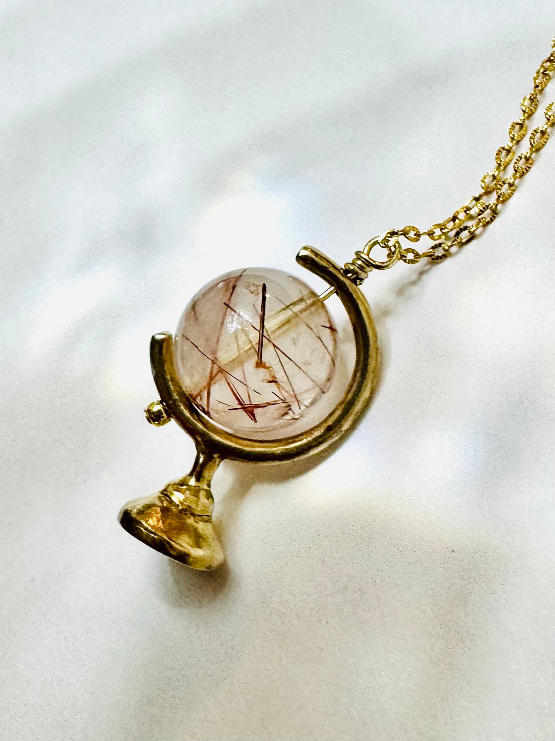 鉱物好きで、ノスタルジックなレトロなデザインを愛する「olivine」が手掛けるミニチュア地球儀のペンダント