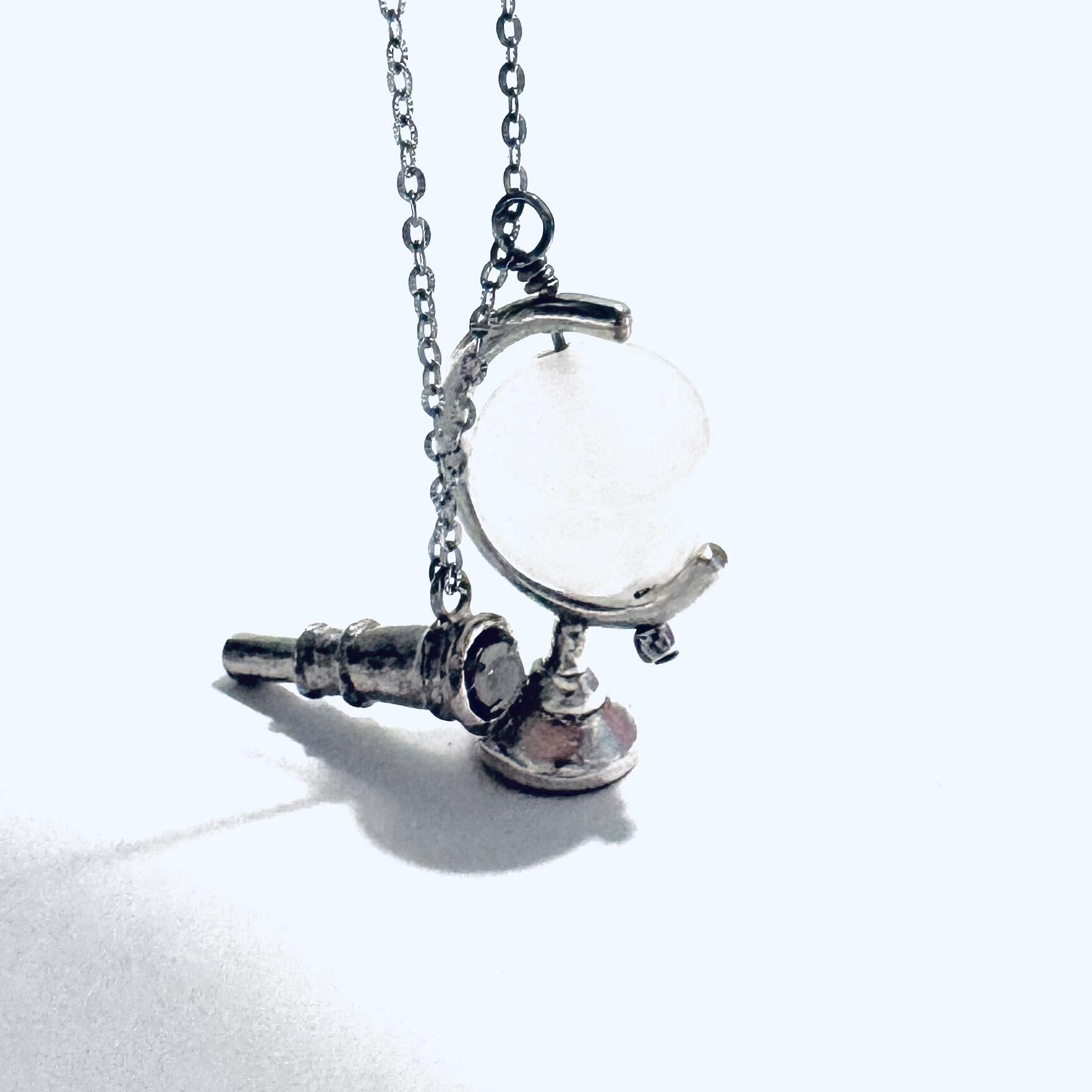 鉱物好きで、ノスタルジックなレトロなデザインを愛する「olivine」が手掛けるミニチュア地球儀のペンダント