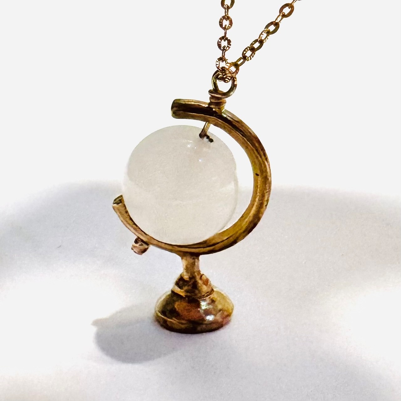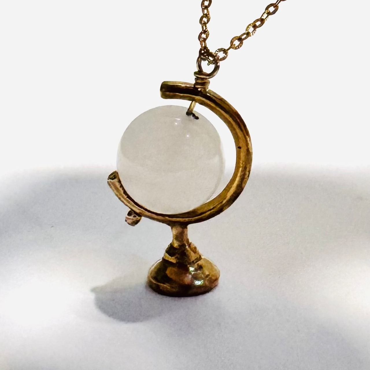 鉱物好きで、ノスタルジックなレトロなデザインを愛する「olivine」が手掛けるミニチュア地球儀のペンダント
