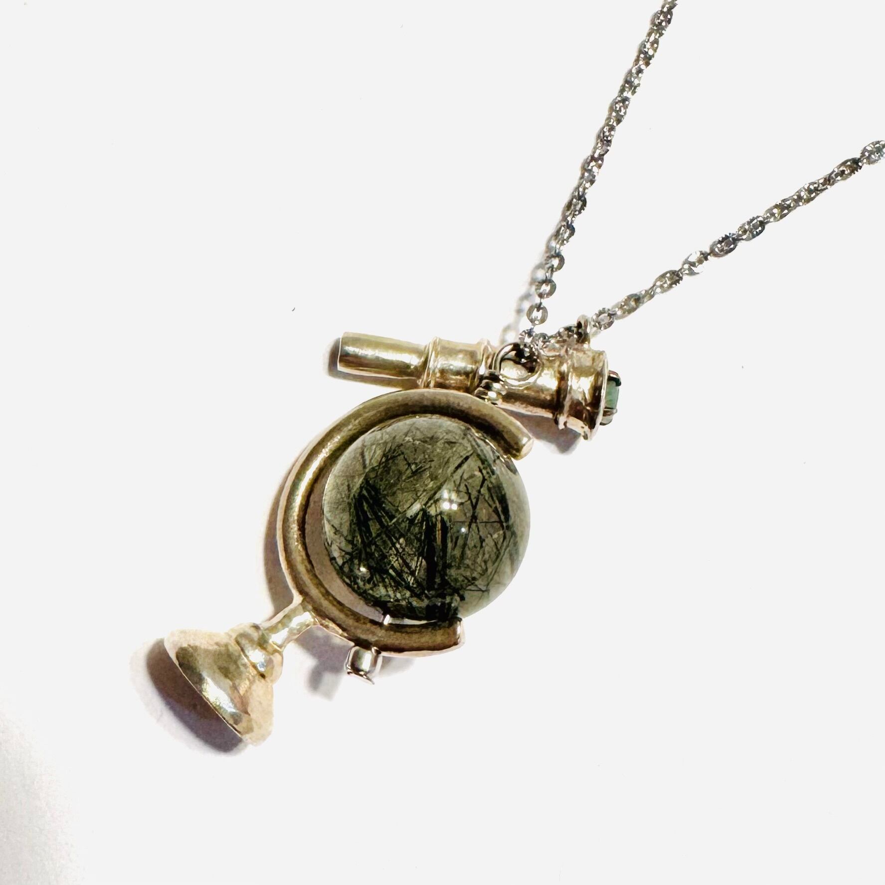 鉱物好きで、ノスタルジックなレトロなデザインを愛する「olivine」が手掛けるミニチュア地球儀のペンダント