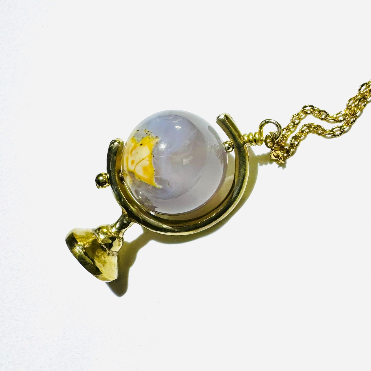 鉱物好きで、ノスタルジックなレトロなデザインを愛する「olivine」が手掛けるミニチュア地球儀のペンダント
