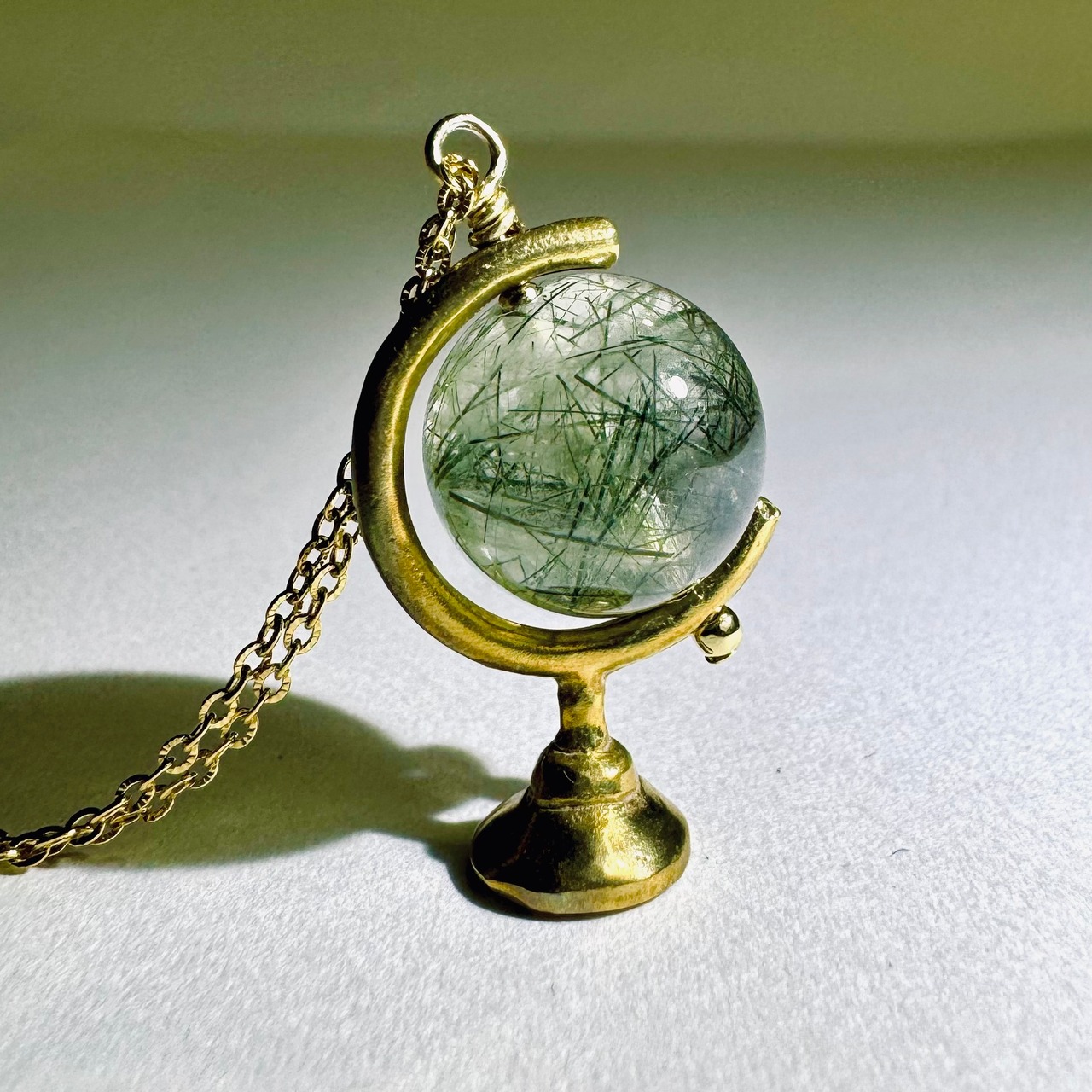 鉱物好きで、ノスタルジックなレトロなデザインを愛する「olivine」が手掛けるミニチュア地球儀のペンダント